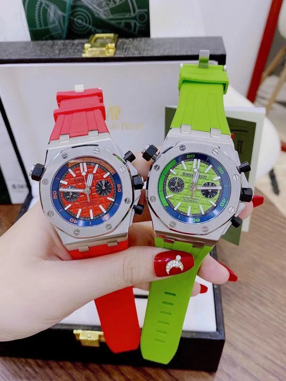 Specifications Audemars Piguet Men’s WatchFace Size: 43mm Thickness 12mmMovement: Japan Movt (Japanese battery)Glass: Mineral CrystalCase and buckle: Stainless SteelStrap: Natural Rubber BandWater Resistant: 5ATM