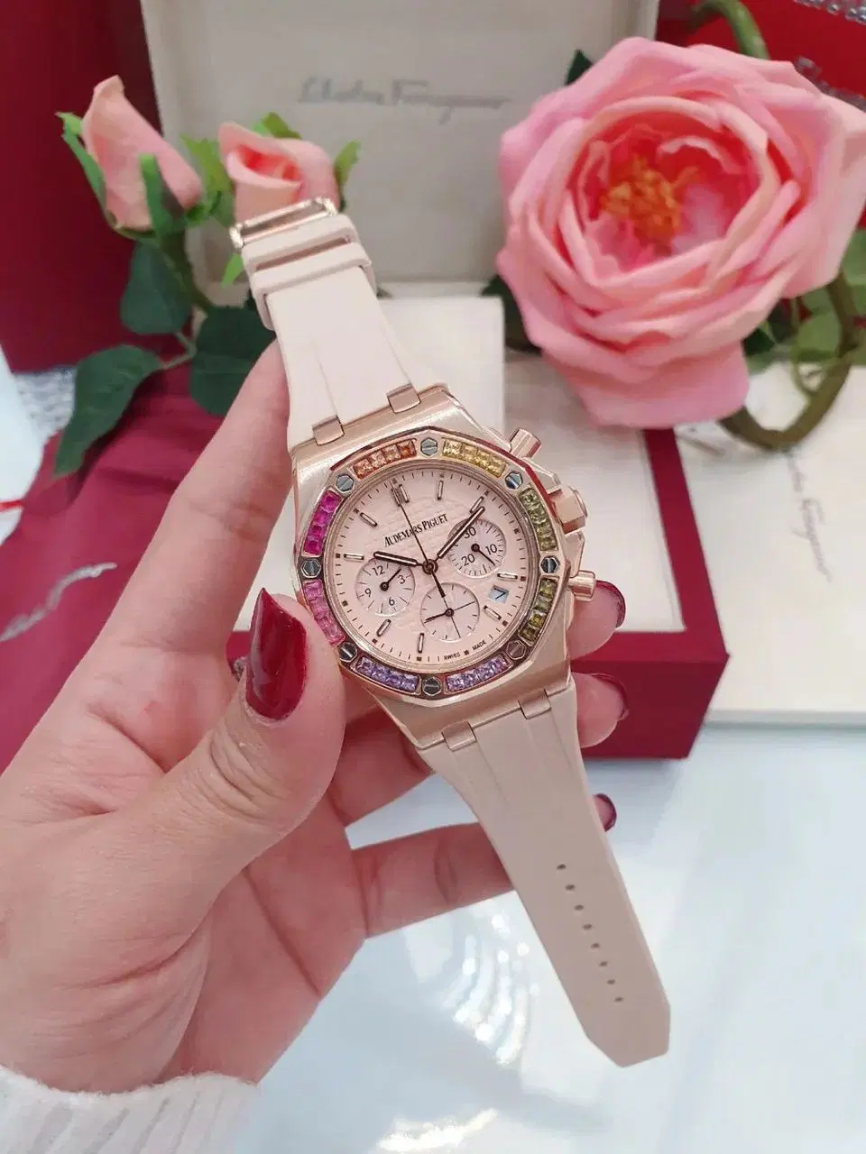 Specifications Audermas Piguet Women’s WatchMovement: Swiss Made (Swiss Batteries)Face size 37m Run needlesGlass: Mineral CrystalDynamic natural rubber bandColorful crystal rhinestones