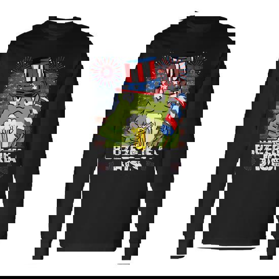 Buzzed Like A Boss 4Th Of July American Flag Frog Men Women Long Sleeve T-Shirt