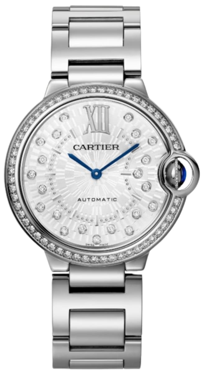 Cartier Ballon Bleu de Cartier Medium Automatic Silver Dial Diamond Bezel Steel Women’s Watch W4BB0036 36mm