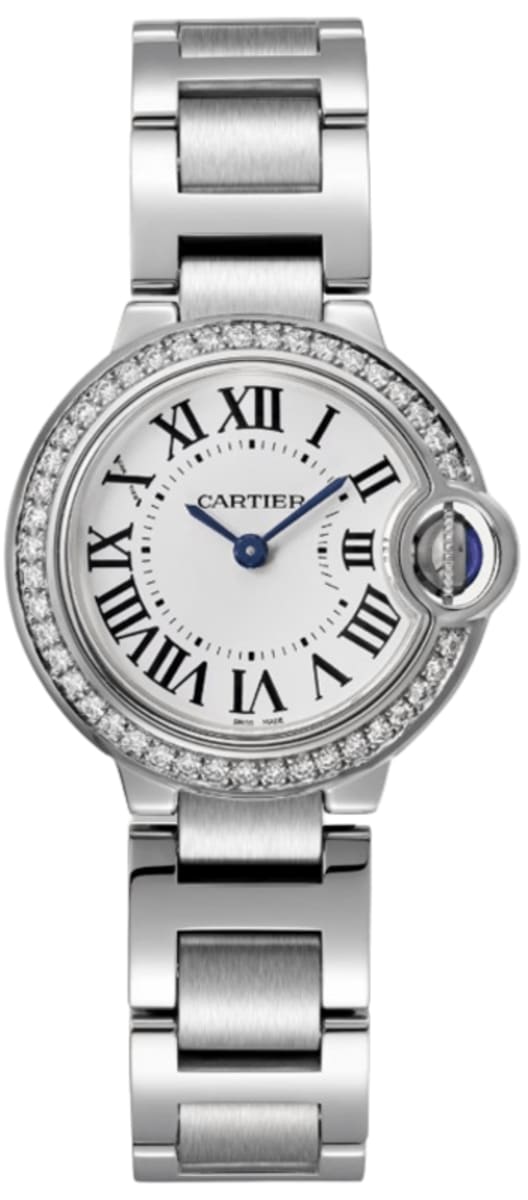 Cartier Ballon Bleu de Cartier Quartz White Dial Diamond Bezel Steel Women’s Watch W4BB0030 28mm
