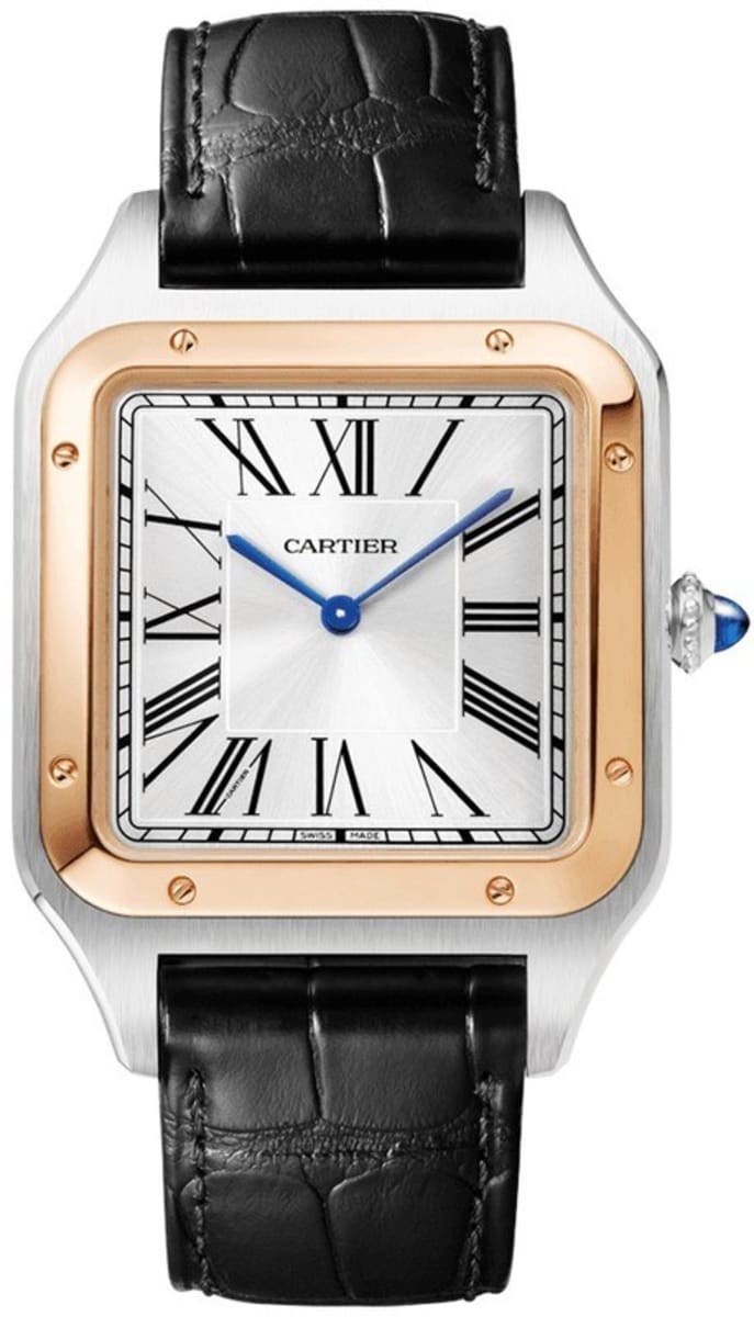 Cartier Santos Dumont Extra Large Rose Gold and Stainless Steel Black Leather Strap Men’s Watch W2SA0017 47mm