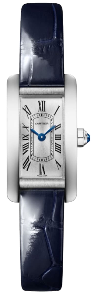 Cartier Tank Americaine Quartz Mini Silver Dial Blue Leather Strap Women’s Watch WSTA0081 28mm