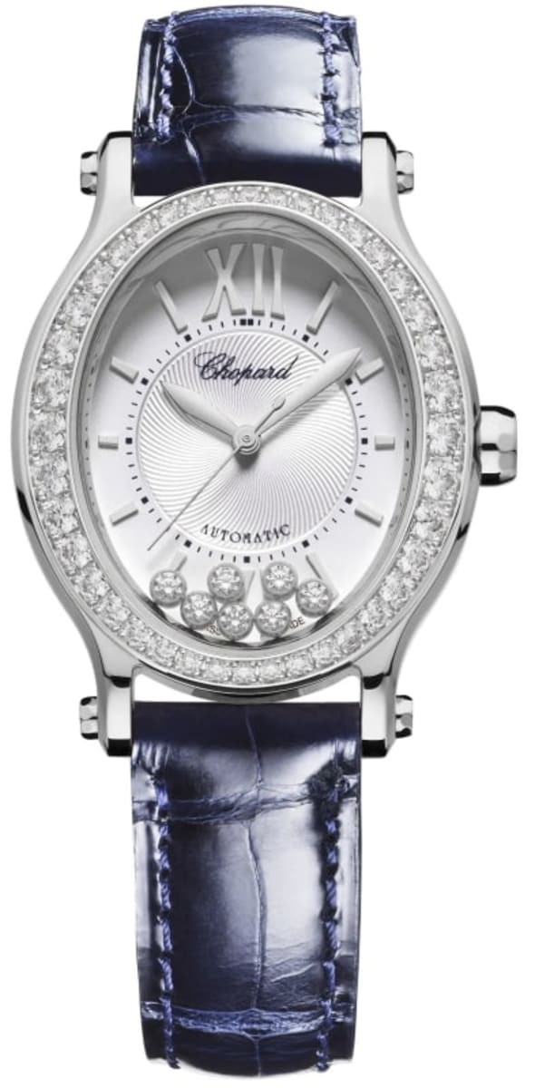 Chopard Happy Sport Oval 7 Floating Diamonds Silver Dial Diamond Leather Strap Women’s Watch 278602-3003 31.3mm