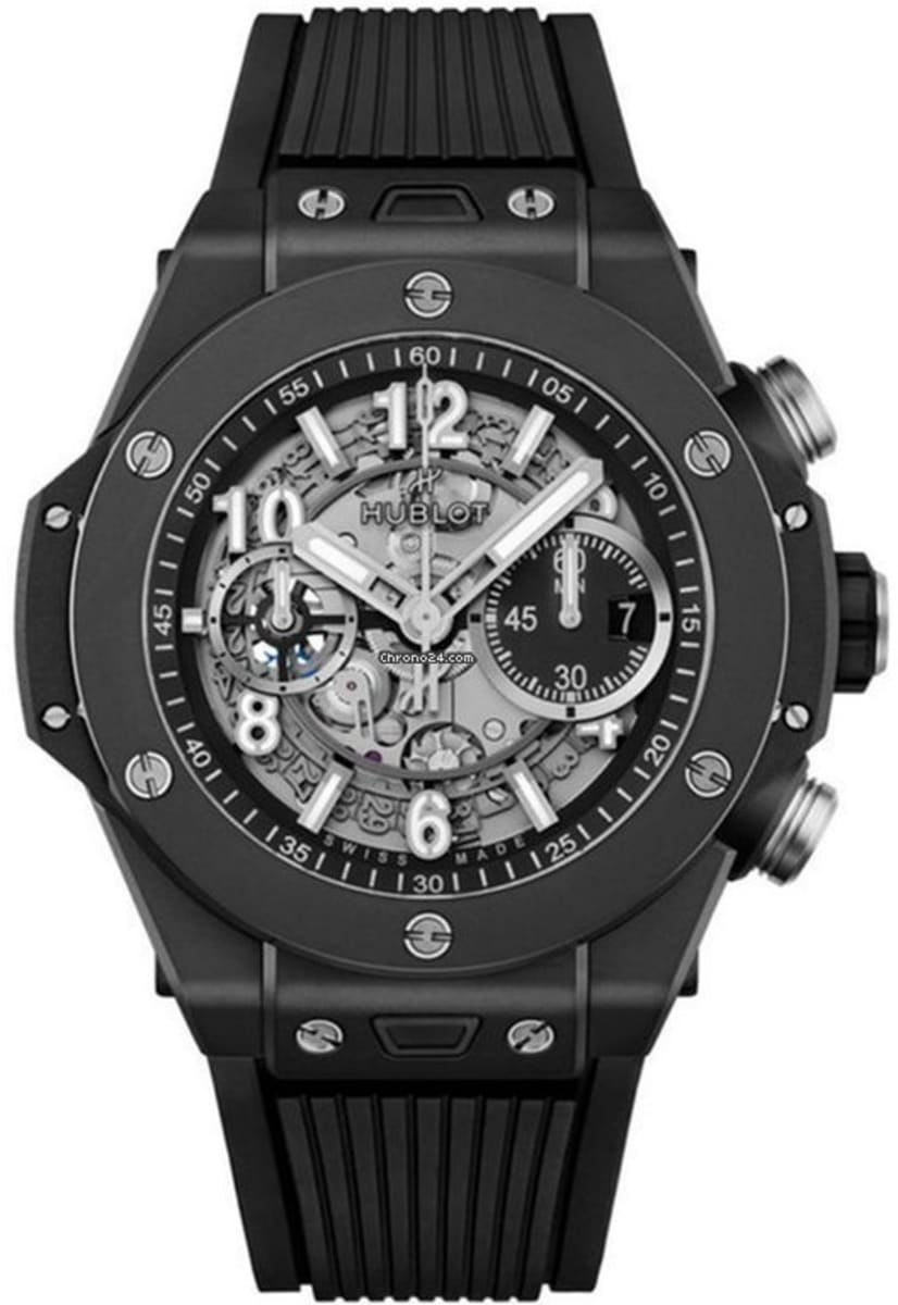 Brand New Hublot Big Bang Unico Skeleton Dial Rubber Strap Men’s Watch Model 421.CI.1170.RX. Black Ceramic case with Black Rubber strap. Deployment clasp. Fixed bezel. Dial description: Silver tone luminous hands and Arabic Numerals/Index hour markers with minute markers around the outer rim and 2 sub-dials on a Skeleton dial. Automatic-Chronograph movement. Calendar: Date at 3 o’clock. Chronograph sub-dials display: Small Seconds, 60 Minute. Powered by Hublot Calibre HUB1280 engine with 72 hours power reserve. Watch functions: Date, Power Reserve, Hour, Minute, Second, Chronograph. Screw Down crown. Scratch Resistant Sapphire crystal. Round case shape. Case size: 44mm. Transparent case back (for illustration purposes only). 100 Meters – 330 Feet water resistant. Also known as model: 421CI1170RX.