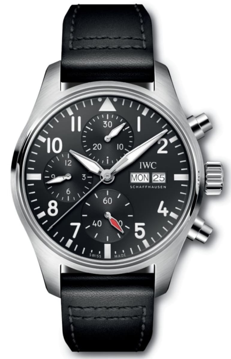 IWC Pilot’s Chronograph Black Dial Leather Strap Men’s Watch IW388111 41mm