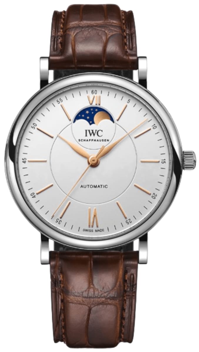 IWC Portofino Automatic Moon Phase Silver Dial Brown Leather Strap Men’s Watch IW459401 40mm