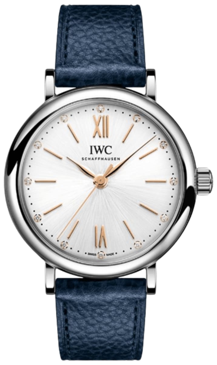IWC Portofino Automatic Silver Diamond Dial Blue Leather Strap Women’s Watch IW357411 34mm