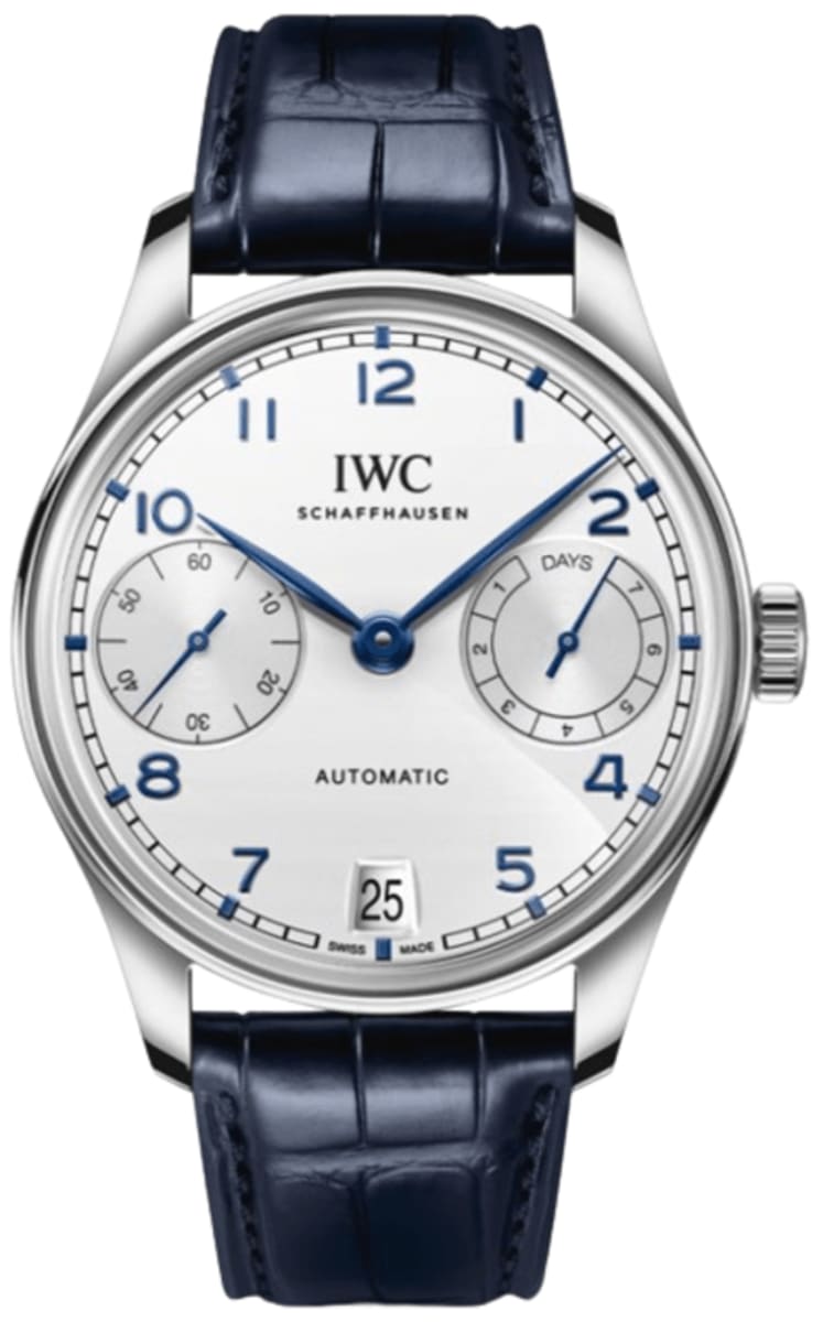 IWC Portugieser Automatic 7 Day Power Reserve Silver Dial Blue Leather Strap Men’s Watch IW501702 42.4mm