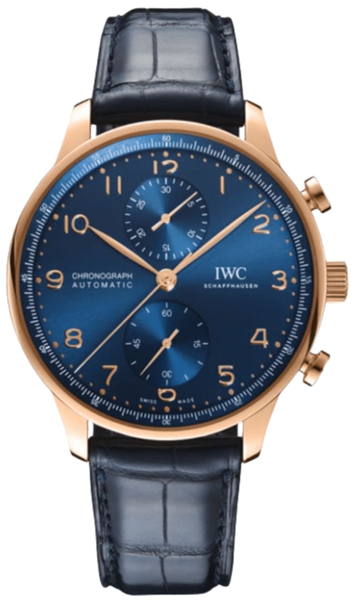 IWC Portugieser Automatic Chronograph Blue Dial 18K Rose Gold Blue Leather Strap Men’s Watch IW371614 41mm