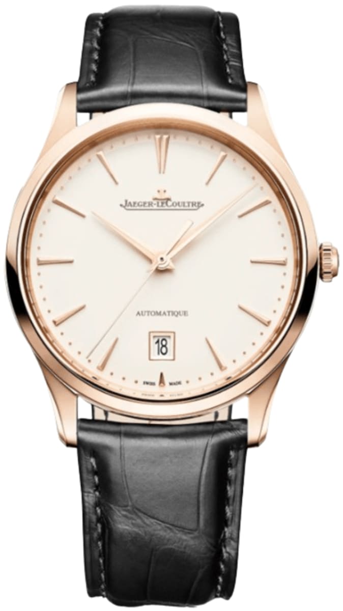 Jaeger LeCoultre Master Ultra Thin Date Automatic Beige Dial 18K Rose Gold Black Leather Strap Men’s Watch Q1232511 39mm