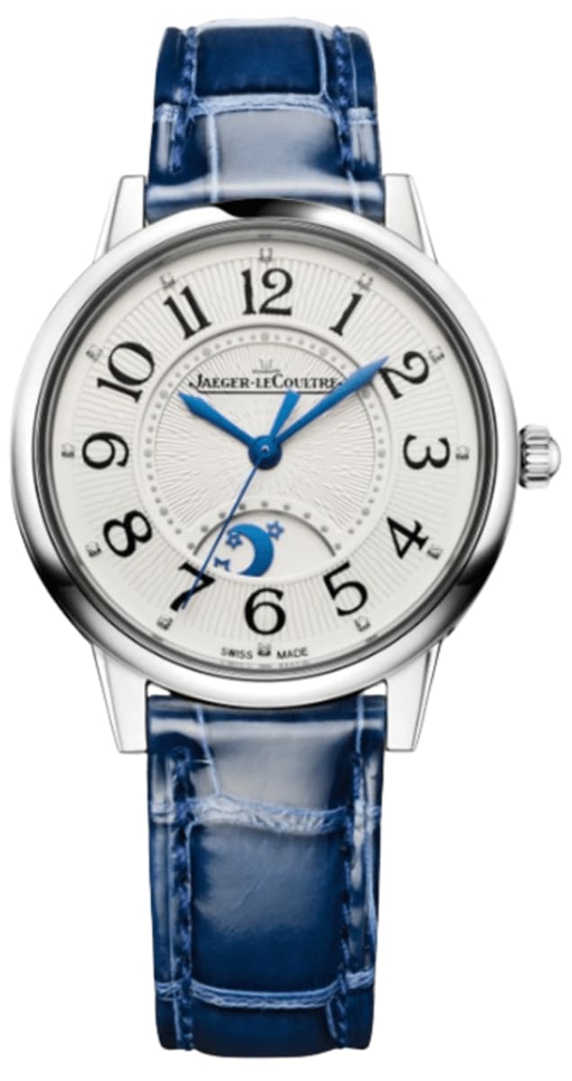 Jaeger LeCoultre Rendez-Vous Night & Day 34mm Automatic Grey Diamond Dial Blue Leather Strap Women’s Watch Q3448410 34mm