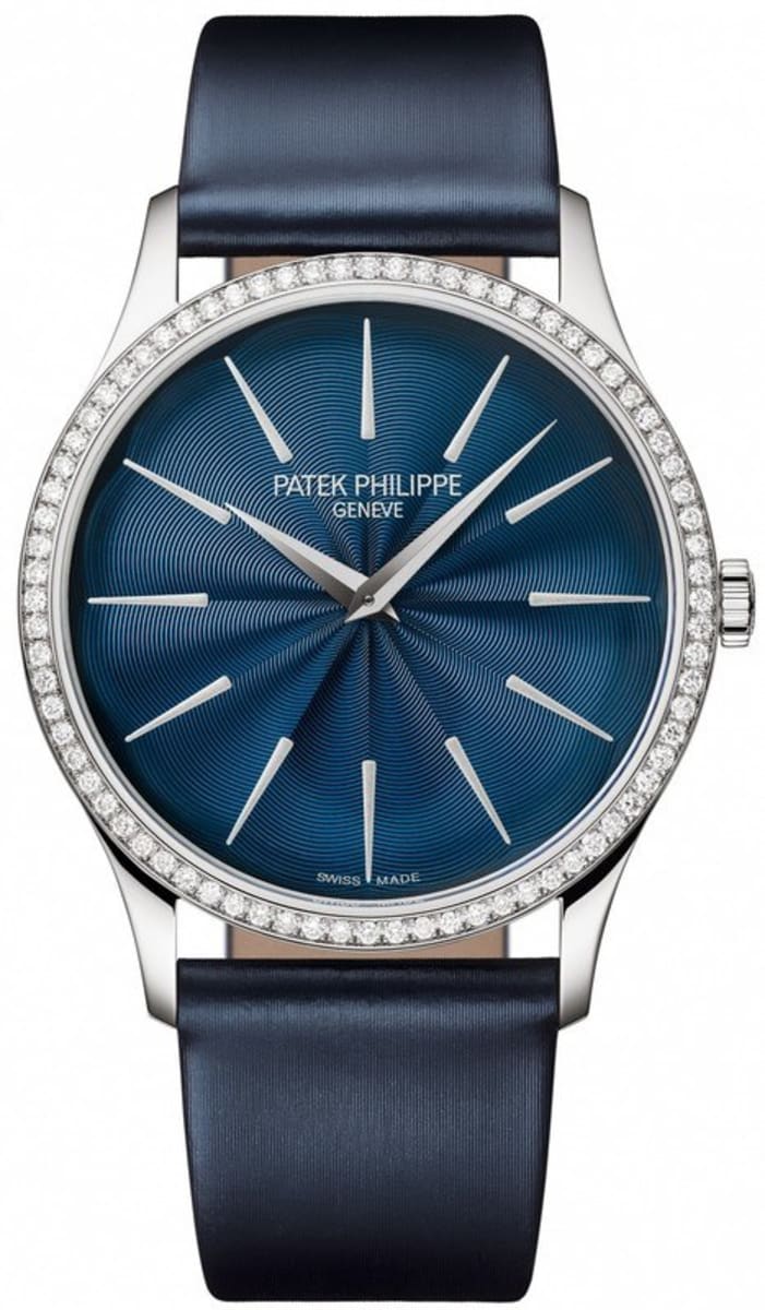 Patek Philippe Calatrava Blue Dial Diamond Leather Strap Women’s Watch 4997/200G-001 33mm