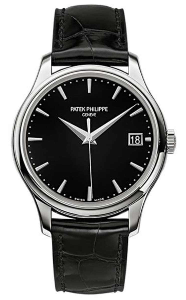 Brand New Patek Philippe Calatrava Men’s Watch Model 5227G-010. 18kt White Gold case with Blak Alligator Leather strap. Tang clasp. Fixed bezel. Black dial. Automatic, 45 Hour Power Reserve movement. Push In crown. Scratch Resistant Sapphire crystal. Case size: 39mm. Solid case back. 30 Meters – 100 Feet water resistant.