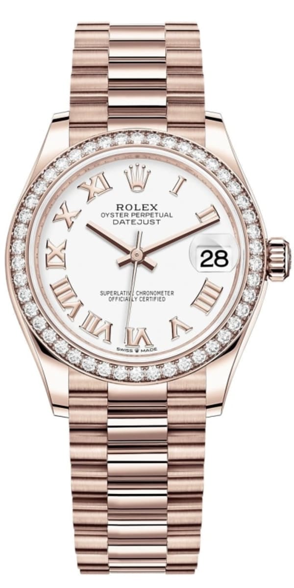 Rolex Datejust 31 Everose Gold White Roman Dial Diamond Bezel Women’s Watch M278285RBR-0008 31mm