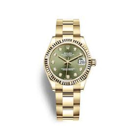 Rolex Datejust 31 Olive Green Diamond Dial 18kt Yellow Gold Oyster Ladies Watch 278278GNDO 31mm