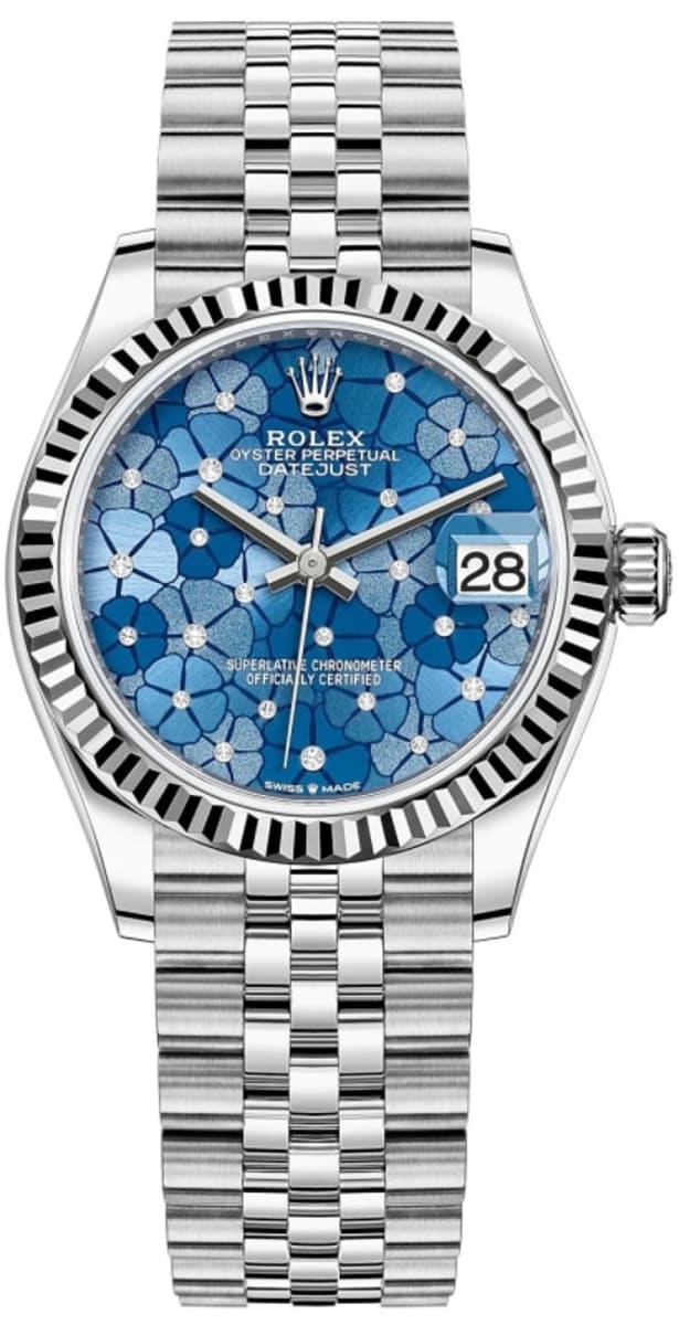 Rolex Datejust 31 Stainless Steel and White Gold Azzuro-Blue-Floral-Motif Diamond Dial Women’s Watch M278274-0036 31mm