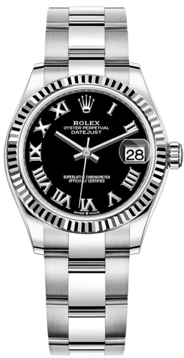 Rolex Datejust 31 Stainless Steel and White Gold Black Roman Dial Women’s Watch M278274-0001 31mm