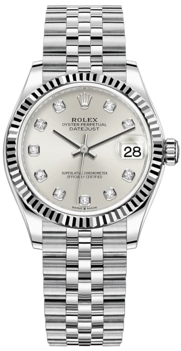 Rolex Datejust 31 Stainless Steel and White Gold Silver Diamond Dial Women’s Watch M278274-0030 31mm