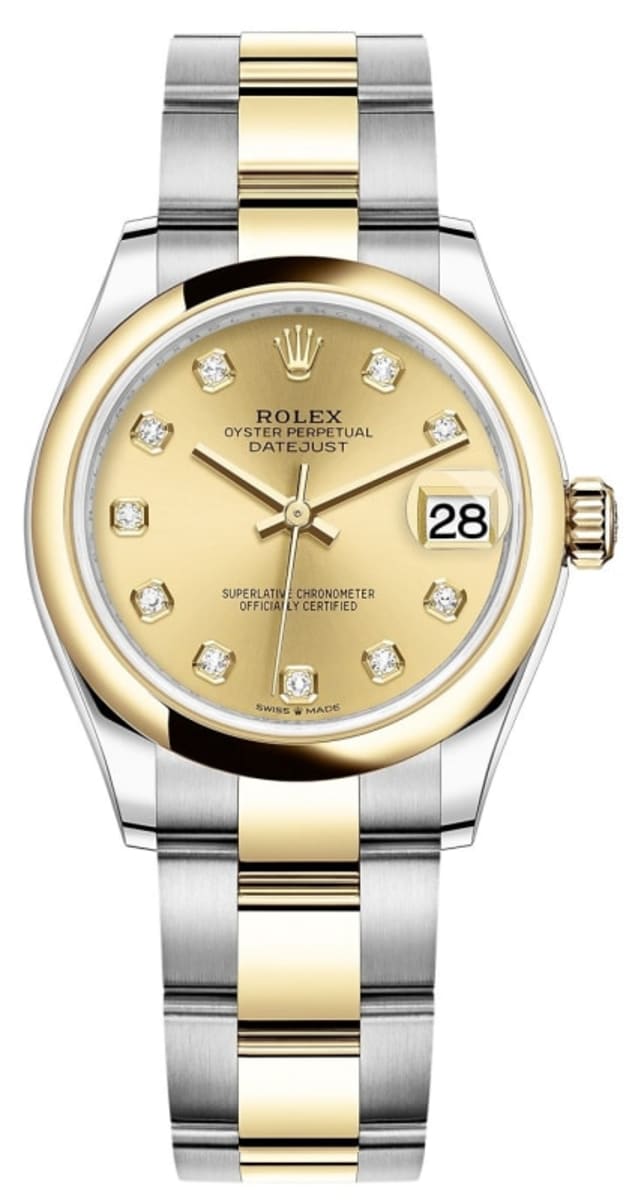 Rolex Datejust 31 Stainless Steel and Yellow Gold Champagne Diamond Dial Women’s Watch M278243-0025 31mm