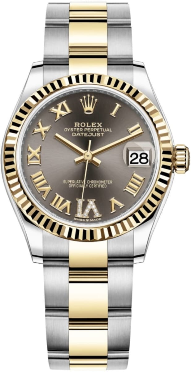 Rolex Datejust 31 Stainless Steel and Yellow Gold Dark Grey Roman Diamond Dial Women’s Watch M278273-0017 31mm