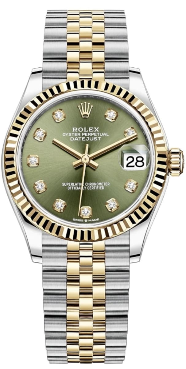 Rolex Datejust 31 Stainless Steel and Yellow Gold Olive Green Diamond Dial Women’s Watch M278273-0030 31mm