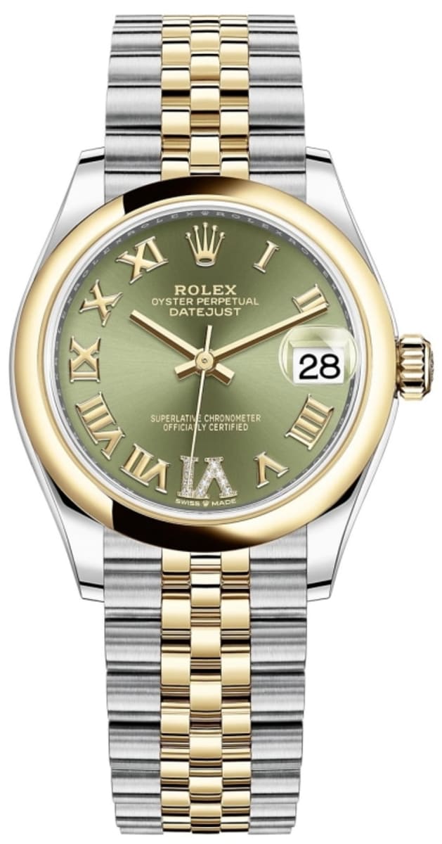 Rolex Datejust 31 Stainless Steel and Yellow Gold Olive Green Roman Diamond Dial Women’s Watch M278243-0016 31mm