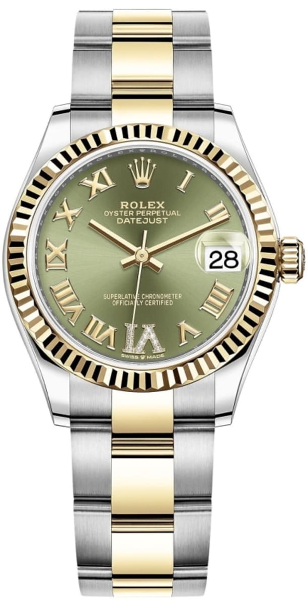 Rolex Datejust 31 Stainless Steel and Yellow Gold Olive Green Roman Diamond Dial Women’s Watch M278273-0015 31mm