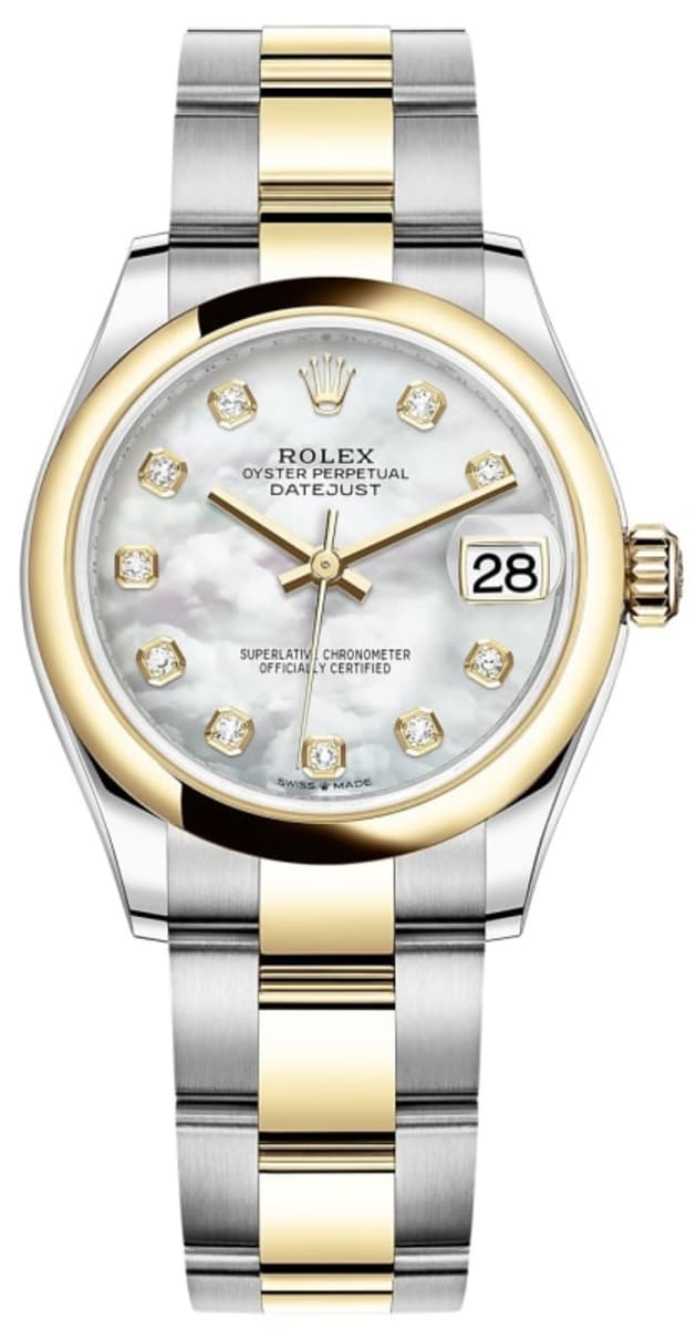 Rolex Datejust 31 Stainless Steel and Yellow Gold White Mother-of-Pearl Diamond Dial Women’s Watch M278243-0027 31mm