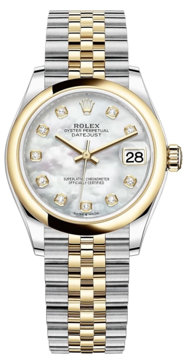 Rolex Datejust 31 Stainless Steel and Yellow Gold White Mother-of-Pearl Diamond Dial Women’s Watch M278243-0028 31mm