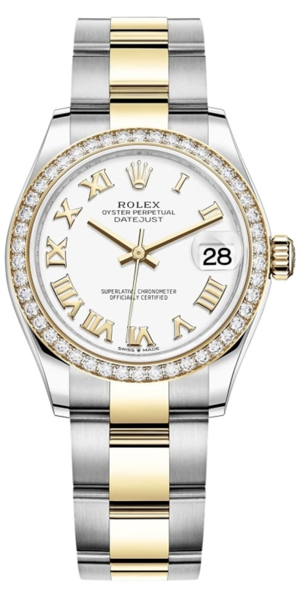 Rolex Datejust 31 Stainless Steel and Yellow Gold White Roman Dial Diamond Bezel Women’s Watch M278383RBR-0001 31mm