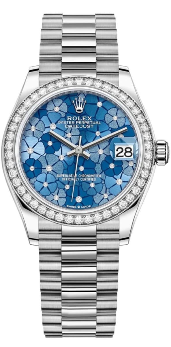Rolex Datejust 31 White Gold Azzuro-Blue Floral-Motif Diamond Dial Women’s Watch M278289RBR-0025 31mm