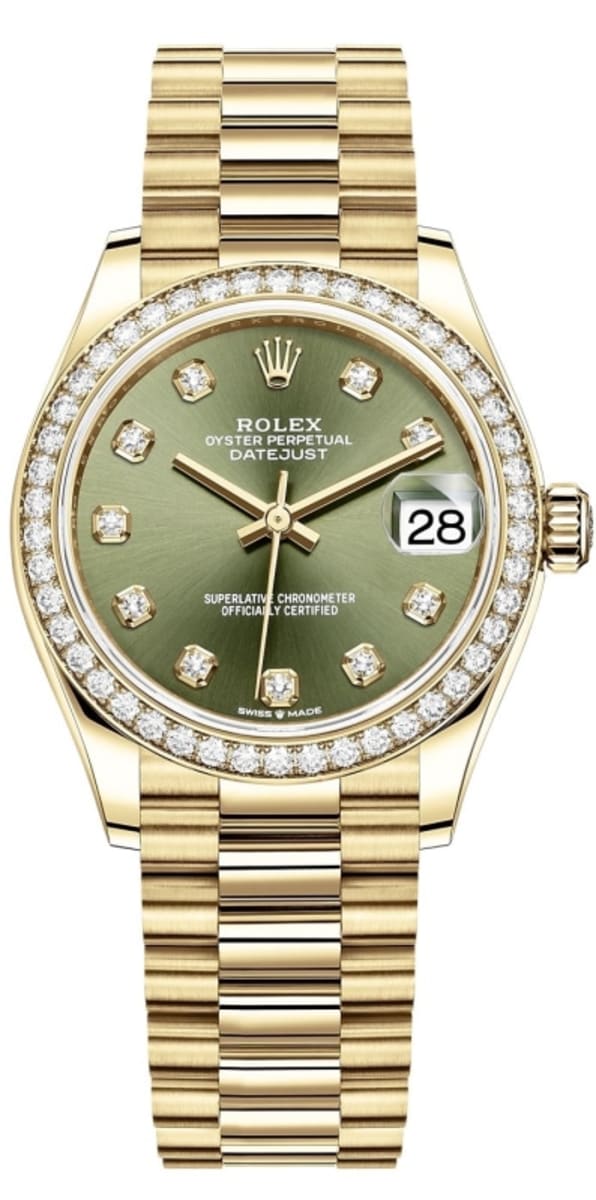 Rolex Datejust 31 Yellow Gold Olive Green Diamond Dial Diamond Bezel Women’s Watch M278288RBR-0007 31mm