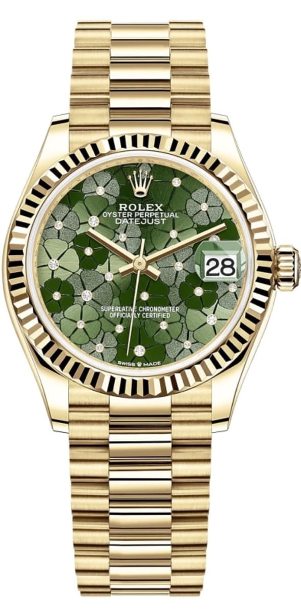 Rolex Datejust 31 Yellow Gold Olive Green Floral-Motif Diamond Dial Women’s Watch M278278-0046 31mm