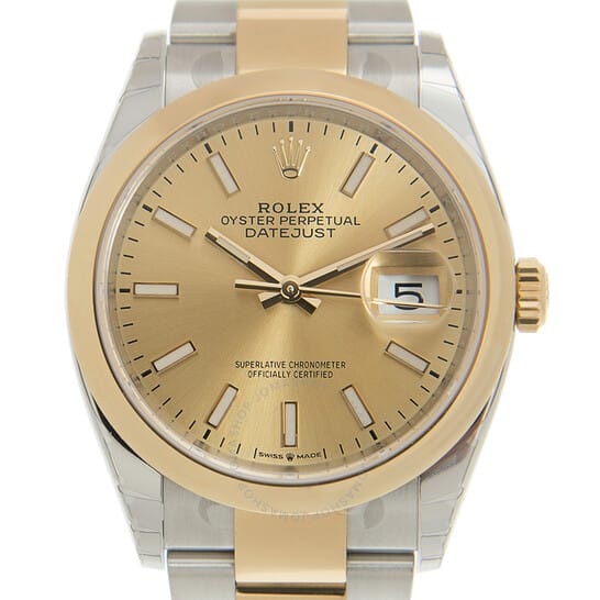 Rolex Datejust 36 Automatic Champagne Dial Men’s Steel and 18K Yellow Gold Oyster Watch 126203CSO 36mm