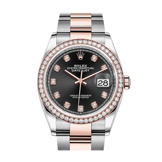 Rolex Datejust 36 Black Diamond Dial Automatic Men’s Steel and 18k Everose Gold Oyster Watch 126281BKDO 36mm
