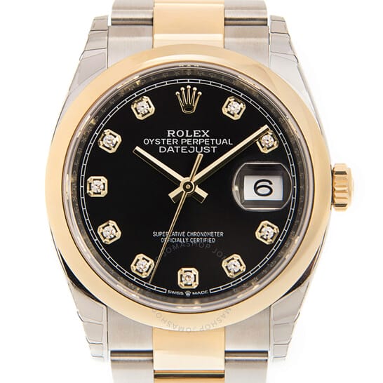 Rolex Datejust 36 Black Diamond Dial Men’s Steel and 18k Yellow Gold Jubilee Watch 126203BKDO 36mm