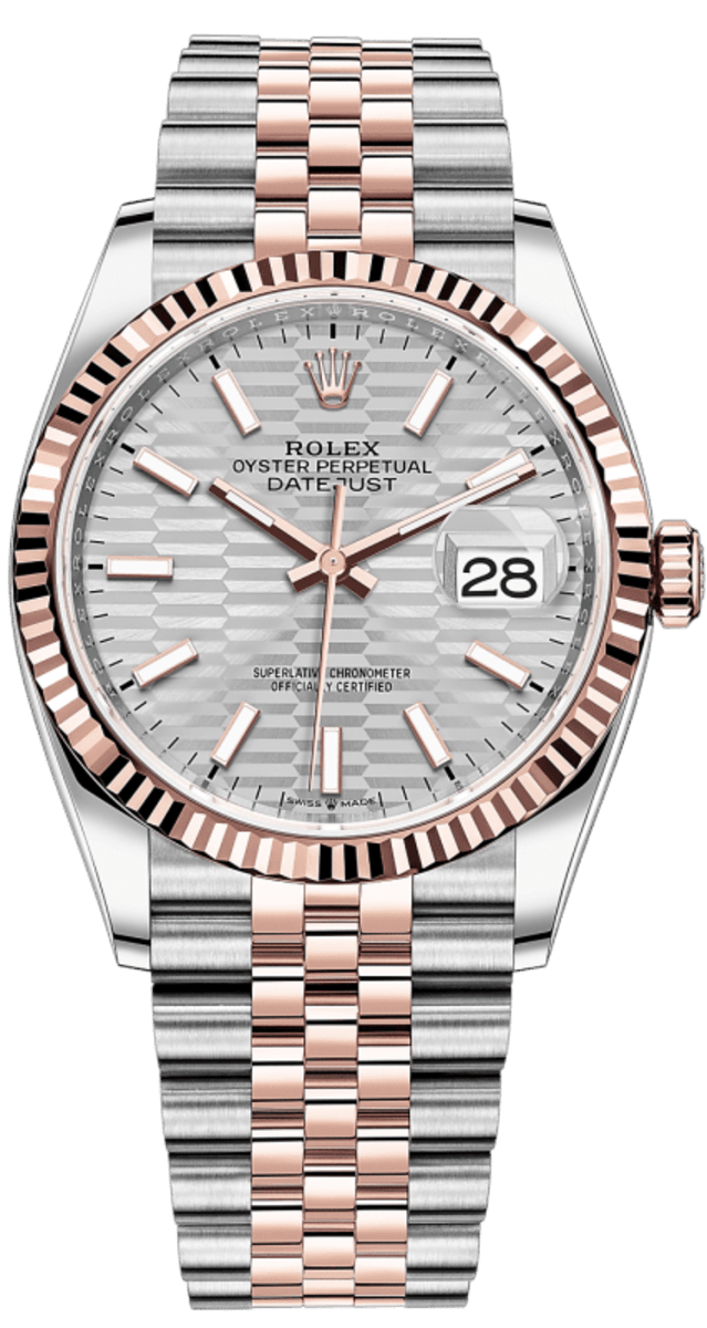 Rolex Datejust 36 Steel & Everose Gold Silver Fluted-Motif Dial Women’s Watch M126231-0033 36mm