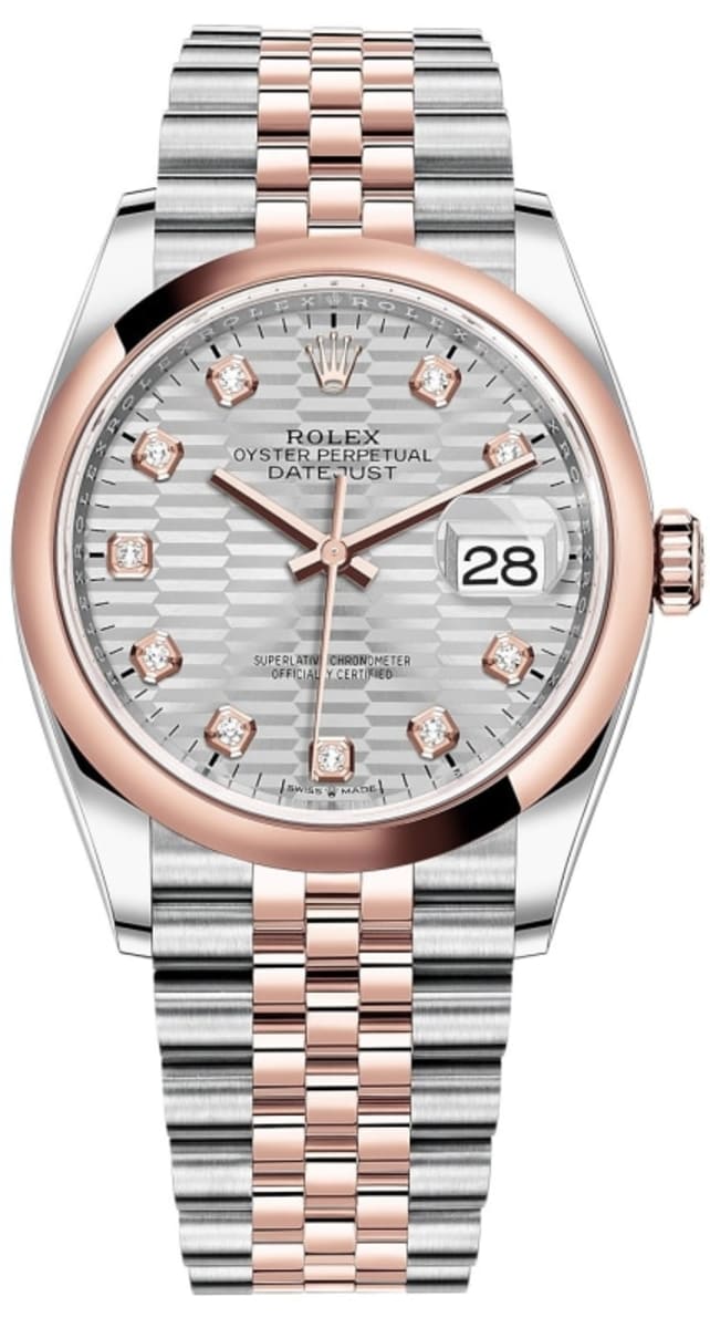 Rolex Datejust 36 Steel & Everose Gold Silver Fluted-Motif Diamond Dial Women’s Watch M126201-0039 36mm
