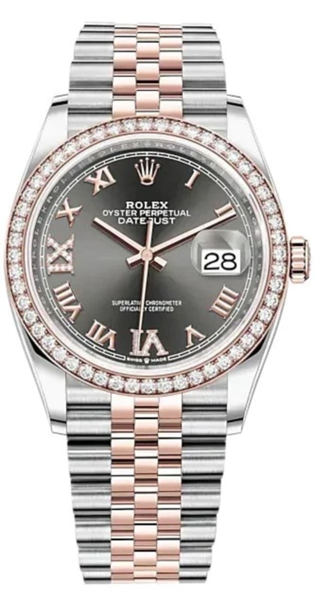 Rolex Datejust 36 Steel & Everose Gold Slate Diamond Pave Roman Dial Diamond Bezel Women’s Watch M126281RBR-0011 36mm