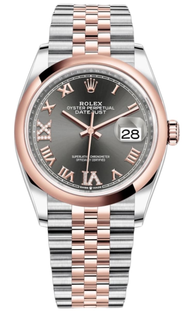 Rolex Datejust 36 Steel & Everose Gold Slate Diamond Pave Roman Dial Women’s Watch M126201-0023 36mm