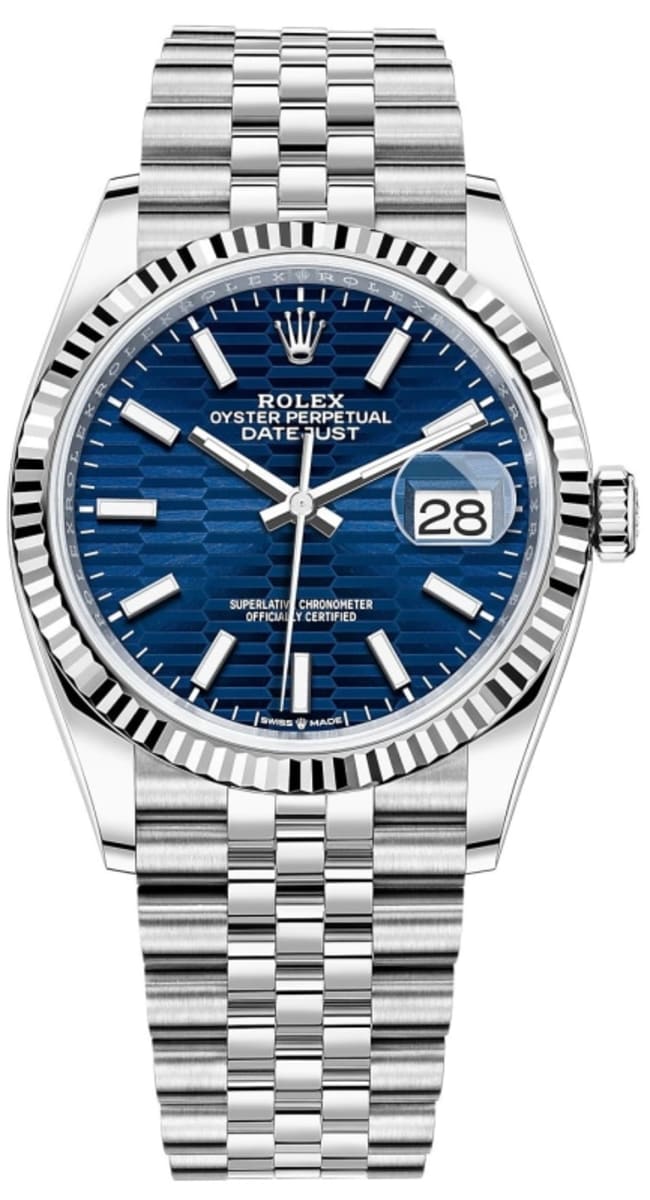 Rolex Datejust 36 Steel & White Gold Blue Fluted-Motif Dial Women’s Watch M126234-0049 36mm