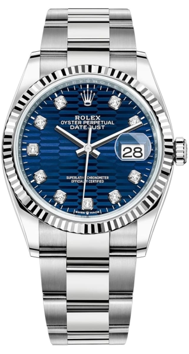 Rolex Datejust 36 Steel & White Gold Blue Fluted-Motif Diamond Dial Women’s Watch M126234-0058 36mm