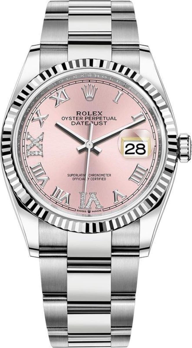 Rolex Datejust 36 Steel & White Gold Pink Diamond Pave Roman Dial Women’s Watch M126234-0032 36mm
