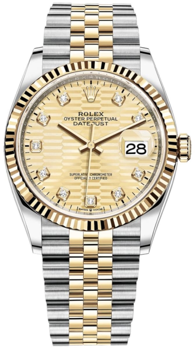 Rolex Datejust 36 Steel & Yellow Gold Golden Fluted-Motif Diamond Dial Women’s Watch M126233-0045 36mm