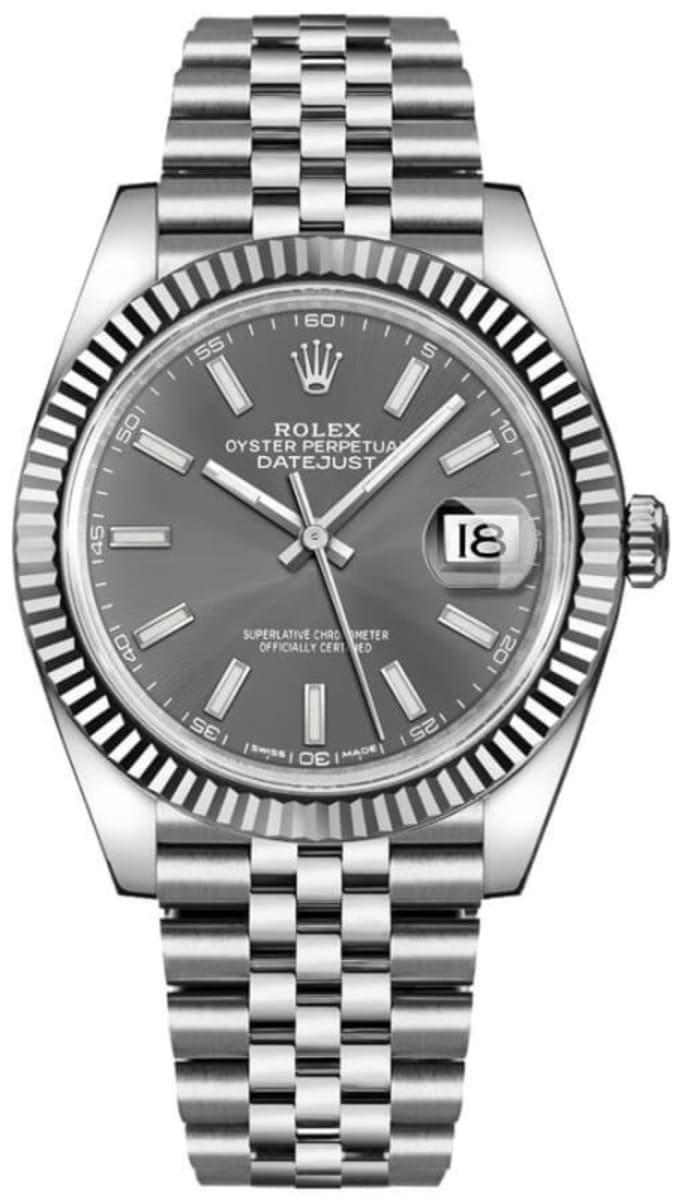 Rolex Datejust 41 Steel & White Gold Fluted Bezel Slate Dial Jubilee Men’s Watch M126334-0014 41mm