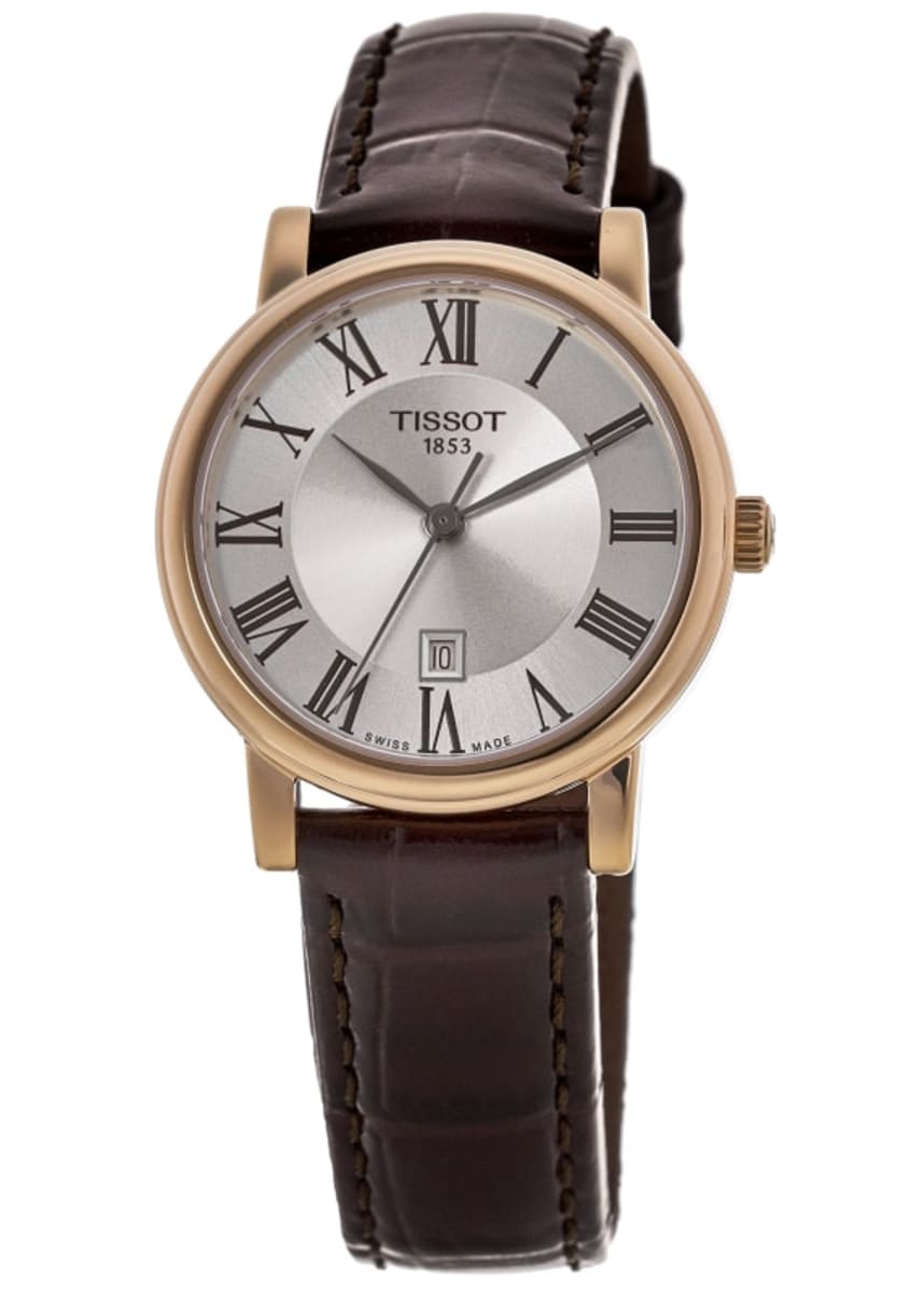 Tissot Carson Premium Silver Dial Brown Leather Strap Women’s Watch T122.210.36.033.00 30mm