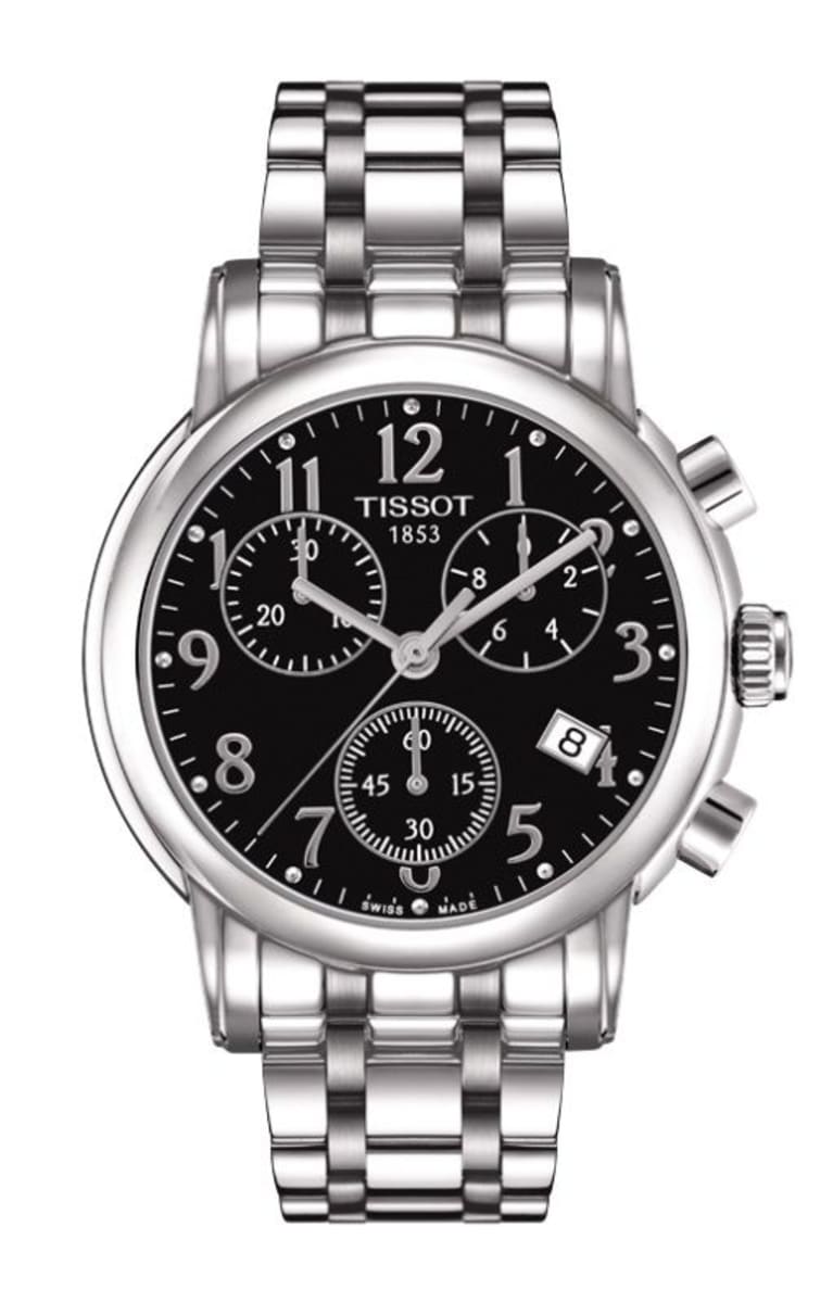 Brand New Tissot T-Classic Women’s Watch Model T050.217.11.052.00. Stainless Steel case with Stainless Steel watch band. Black dial. Battery Operated Quartz movement. Scratch Resistant Sapphire crystal. Case size: 35mm. Case thickness: 10mm. Solid case back. 30 Meters/100 Feet water resistant. Also known as model: T0502171105200.