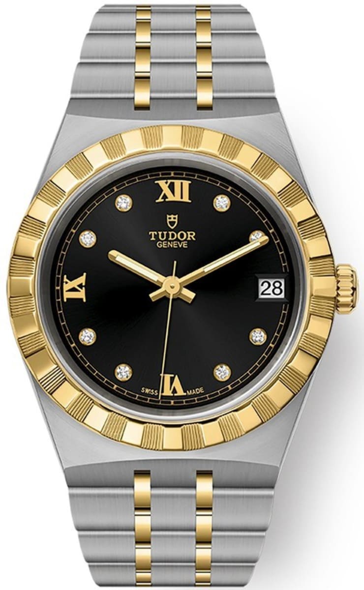 Tudor Royal Black Diamond Dial Stainless Steel and Yellow Gold Unisex Watch M28403-0005 34mm