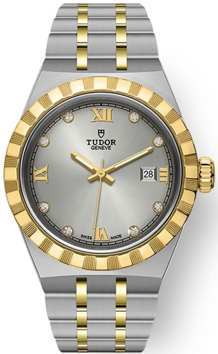 Tudor Royal Silver Diamond Dial Stainless Steel and Yellow Gold Unisex Watch M28303-0002 28mm